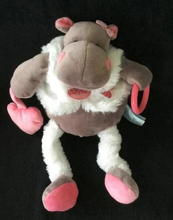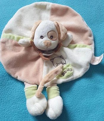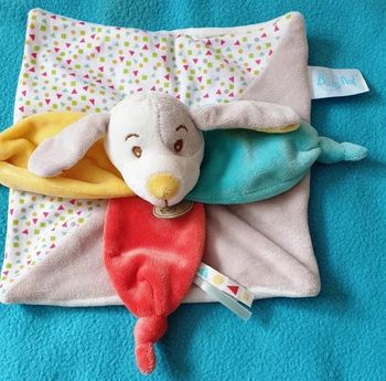 Doudou plat lapin bleu orange coeur bubble gum baby nat carré plat Blanc Beige