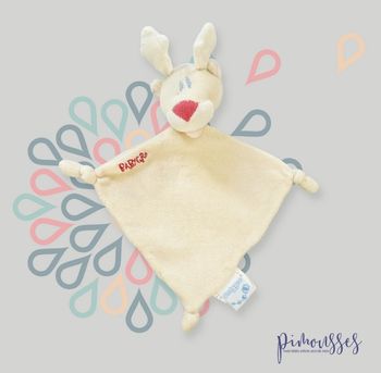 Doudou cerf renne plat velours écru rouge Babygro 23 cm