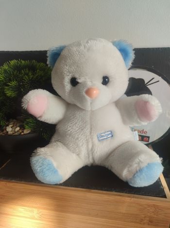 Peluche Ours Empreinte Coussinet Rose 21 cm blanc boulgom ancien chat Bleu Bille