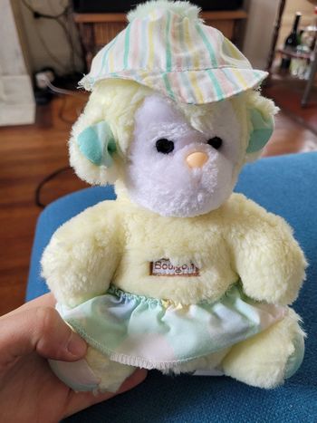 RARE Singe jaune jupe casquette béret peluche Boulgom 20cm doudou Made in France