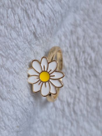 Superbe bague fleur rotative acier inoxydable fleur blanche et jaune