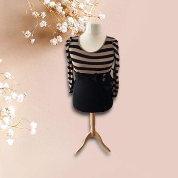Robe droite en laine marron et noire – Taille S – Avec ceinture