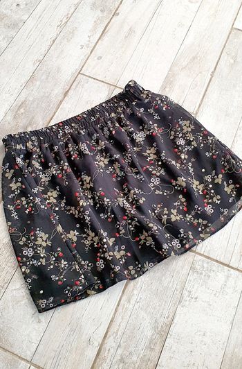 T shirt noir à fleurs, élastique, Clockhouse, taille M