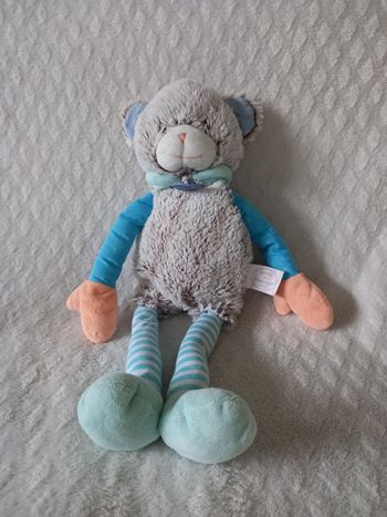 Doudou et compagnie collector ours plat fleur pétale bleu blanc orange DD001533