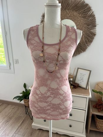 Top moulant en dentelle rose – Fabriqué en France – Taille unique jusqu’au 40