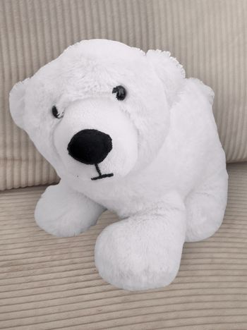 Doudou peluche ours déguisé en lapin bleu blanc étoiles musical max et sax