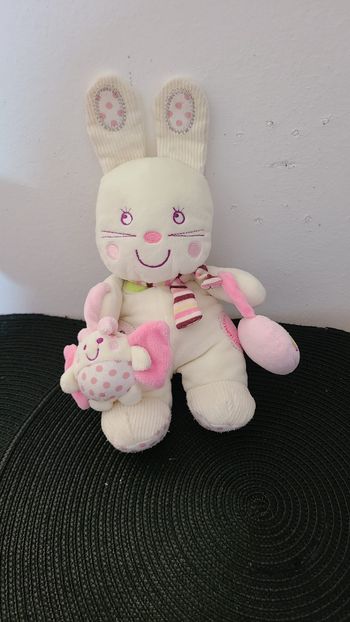 doudou lapin lievre assis beige blanc nicotoy vintage