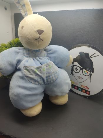 peluche doudou lapin ancien nounours bleu beige bleue de toi poche carreaux 300