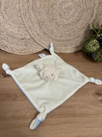 Peluche doudou plat 20cm pediatril mouton blanc bleu très bon état