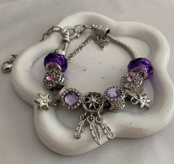Boucles d’oreilles asymétriques longues papillon lune et pierres violettes