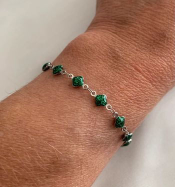 Bracelet trèfle vert à quatre feuilles en acier inoxydable argenté