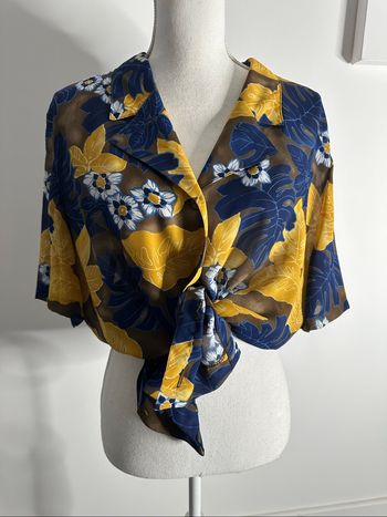 Chemisier à fleurs jaune et bleu Christine Laure Vintage T44 XXL