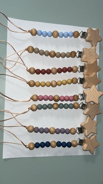 Coffret cadeau naissance attache tétine et anneau de sentions a personnaliser