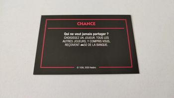 Carte Chance Jamais partager jeu de société Monopoly mauvais perdants Hasbro Gaming #B77