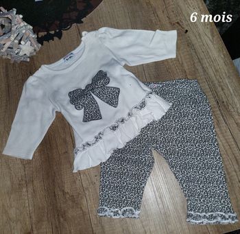 ENSEMBLE 2 PIECES ROSE & TAUPE - TAILLE : 6 MOIS