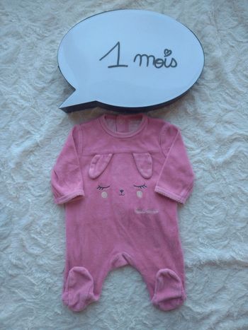 Pyjama grenouillère velours Fille 1 mois lapin avec oreilles Petits Bisous Kiabi