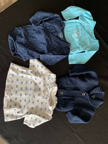 Ensemble lot bleu 1 mois Gilet + t-shirt + bodies