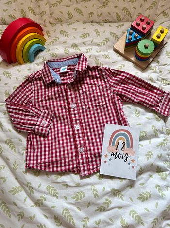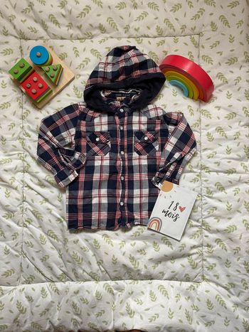 chemise manches longues marine et rouge à capuche 18 mois boite à malices