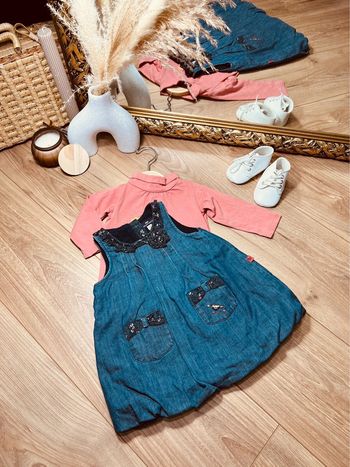 Taille 6 mois tenue 2p fille Sergent Major pêche et bleu jean * oiseau * 🎀