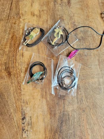 Gros lot collier noir avec pendentif aile ou cœur ou femme personnage