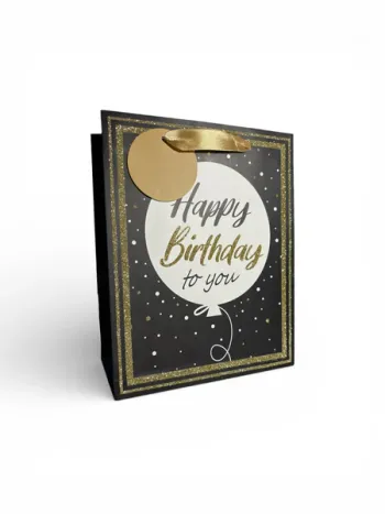 Sac cadeau Anniversaire “Happy Birthday to you” Angels Craft noir doré paillettes 18 x 23 x 10 cm
