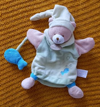 Doudou et compagnie marionnette ours vert- poisson bleu