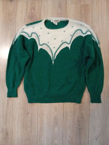 Pull vert et blanc angora t40
