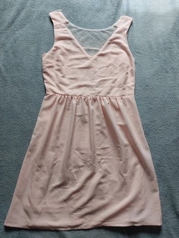 Jolie robe Naf Naf XS à rayures crème et bleu marine avec dos effet dentelle et crochet