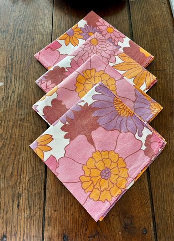 Vintage ensemble de 4 serviettes en tissu fleuries