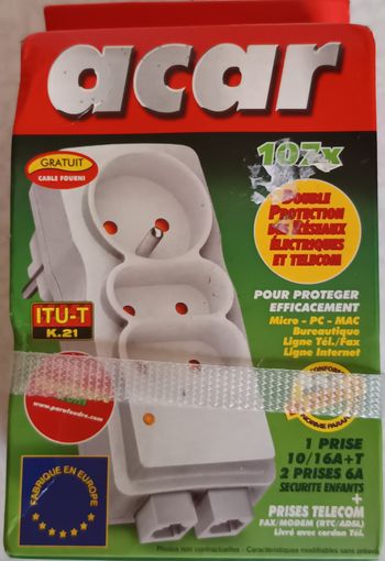 Prise Parafoudre ACAR 107x pour box ADSL, fax, tél et internet et Ligne CB RJ11