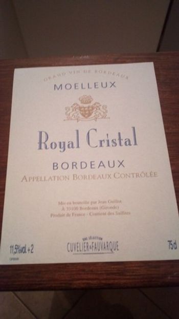étiquette de vin royal cristal bordeaux moelleux neuve -