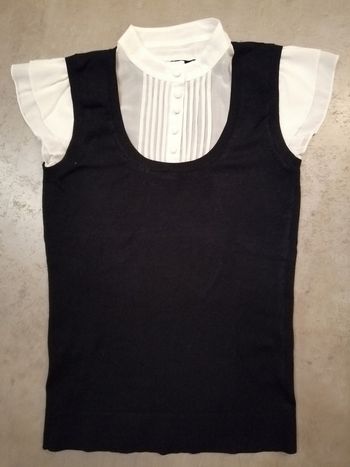 Pull débardeur noir et son chemisier manches courtes écru Camaïeu taille 36/38