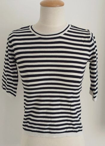 Pull noir marinière rayures grises, camaïeu, taille XS (34)