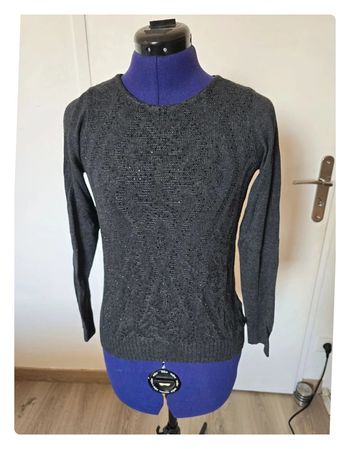 Pull etam XS neuf noir pailleté et décolleté dentelle
