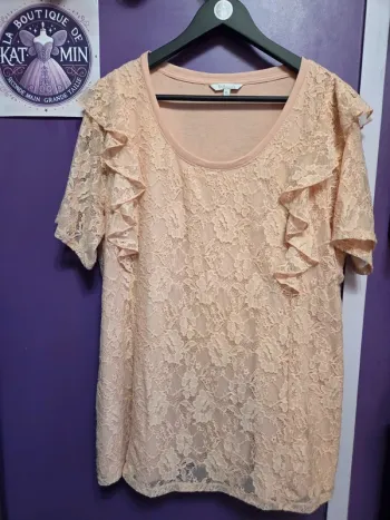 Blouse beige à dentelle col chemise manches courtes Camaïeu Taille 36/38