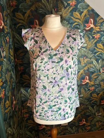 🤎haut top été femme en voile transparent extensible imprimé léopard taille 38 40