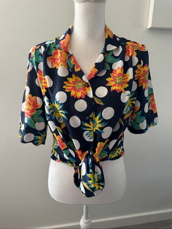 Chemisier à fleurs et pois multicolore Vintage T42/44 XL/XXL