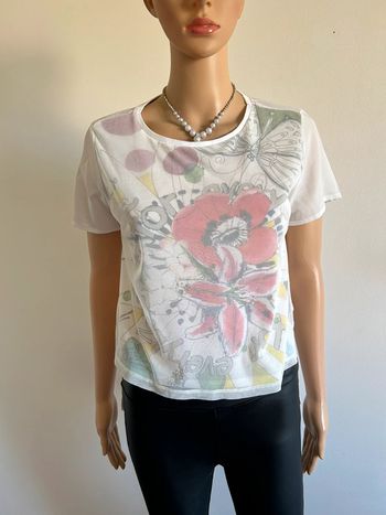 Blouse blanche et imprimée à manches courtes Desigual taille S jamais portée