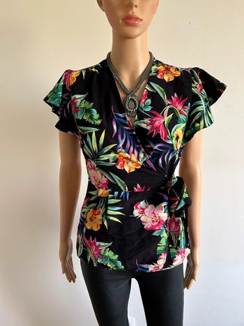 Blouse portefeuille noire et fleurie Morgan taille 34 comme neuve