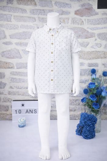 Chemise manches courtes blanc imprimé ancres marine Garçon taille 10 ans marque Kiabi 🎸