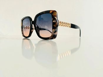 Lunette de soleil femme papillon d'or verres bleus uvprotection taille moyenne