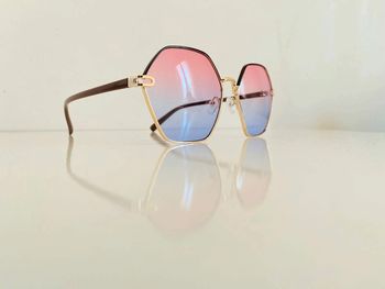 Lunette de soleil femme hexagonale violette verres dégradés uvprotection taille moyenne