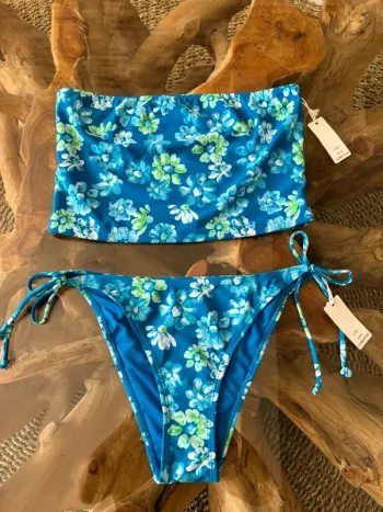 Maillot de bain 2 pièces Ardene femme bleu fleurs