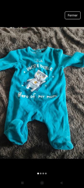 Lot de 2 pyjamas ou grenouillères velours 12 mois très bon etat