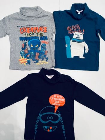 Lot de 3 sous pulls rayés noir/gris/bleu 24m