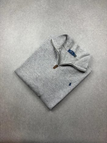 Pull d’hiver half zip 1/4 zip Ralph Lauren gris logo bleu marine taille XL