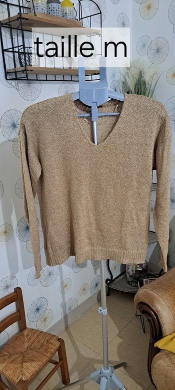 Pull fin col V femme marron clair "Zara" taille M