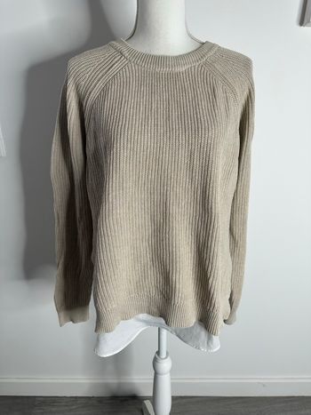 Pull chemise en maille beige et blanc crème Lauren Ralph Lauren T38 M
