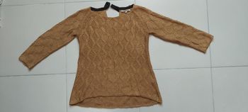 pull écru tricoté main 38/40 Phildar manches points ajourés neuf