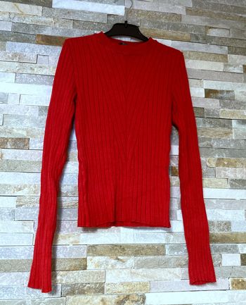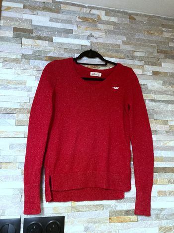 Pull col en v pour femme jacquard Tommy Hilfiger rouge taille M 085